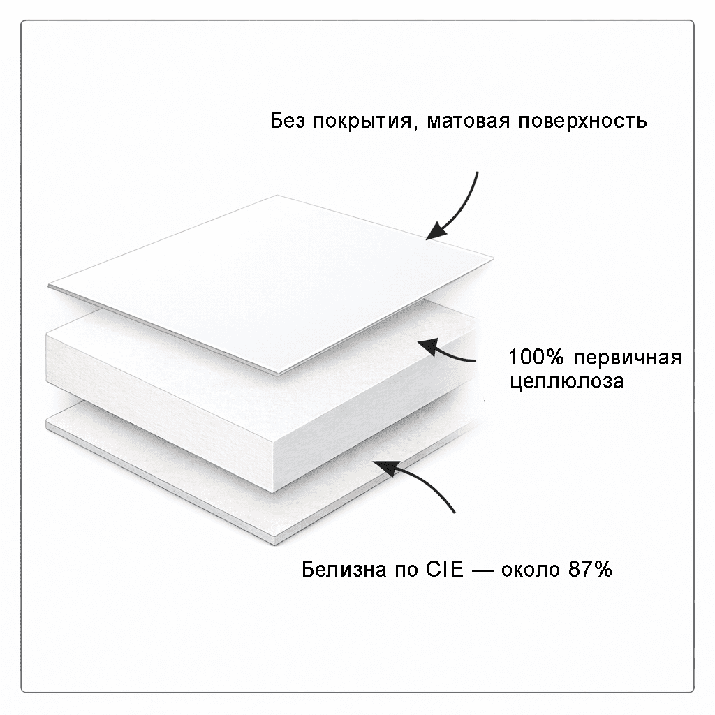 - Белизна по CIE — около 87%